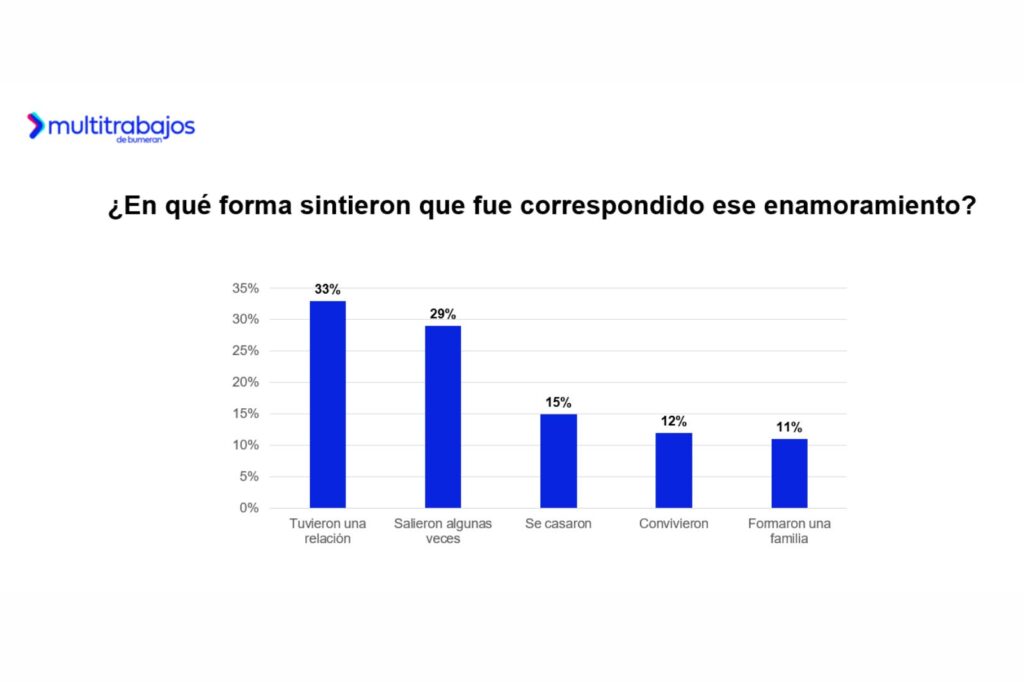 Respecto al desenlace de estos vínculos, el 33% mantuvo una relación amorosa formal con esa persona, el 29% salió o tuvo citas ocasionales y el 15% llegó a contraer matrimonio, lo que evidencia que una parte significativa de estas relaciones trascendió el entorno laboral.