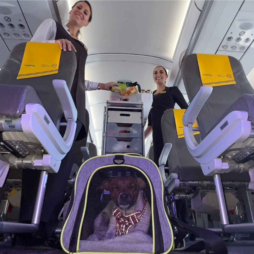 Los snacks para perros se incorporan al menú a bordo que Vueling ofrece a sus viajeros para la temporada de invierno 2023-24. La compañía se convierte así, según afirma en un comunicado, en la primera línea aérea europea que incluye comida para perros en su oferta en vuelo. La pionera en este sentido es la aerolínea brasileña Azul, que en enero anunció que incorporaba a su oferta snacks para canes y gatos.