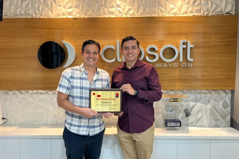 Resumen. Eclipsoft, empresa ecuatoriana con más de 23 años de experiencia en soluciones tecnológicas, recibió por primera vez la certificación Great Place to Work, con un 96 % de participación de sus colaboradores. El reconocimiento destaca su compromiso con la justicia, la equidad y el bienestar, consolidando una cultura organizacional que combina innovación y enfoque humano.