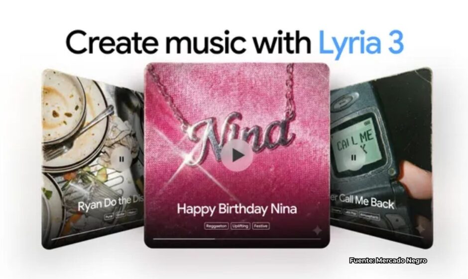 Gemini incorporó en versión beta a Lyria 3, el nuevo modelo de música generativa desarrollado por Google DeepMind, que permite crear canciones a partir de descripciones de texto o imágenes. Según reporta Mercado Negro, la herramienta genera composiciones completas (incluidas letras originales) con una duración máxima de 30 segundos y cada pieza incorpora una marca de agua digital que certifica su origen en inteligencia artificial.