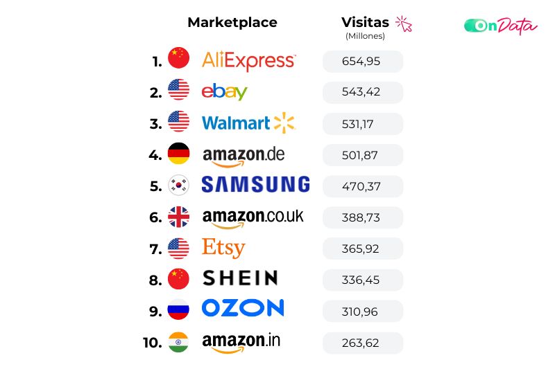 Resumen. En este artículo analizamos los datos del estudio de SEMrush sobre los marketplaces más visitados del mundo, que revela cómo se distribuye el tráfico global entre las principales plataformas de retail. Este análisis permite entender el dominio digital, las variaciones de crecimiento y las tendencias de consumo que definirán el comercio online.