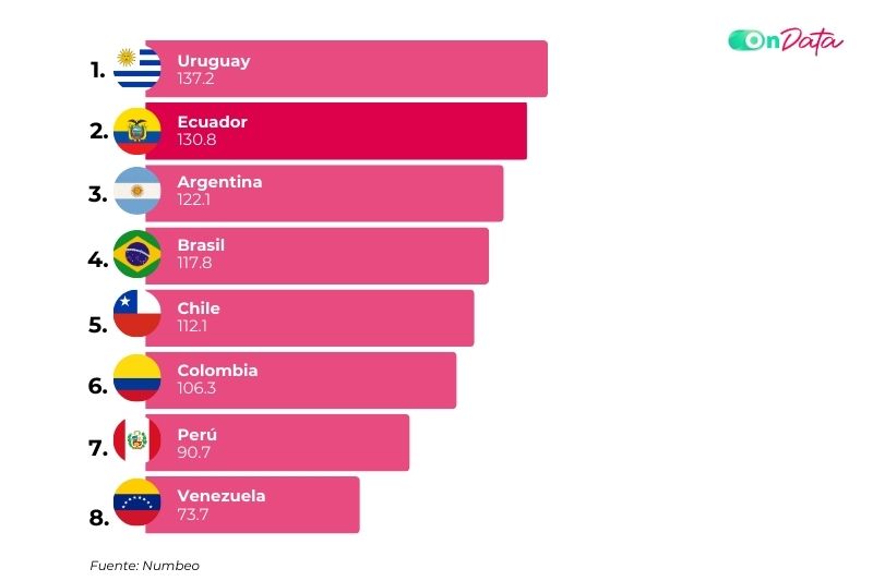 Uruguay encabeza el ranking por varias razones sólidas: estabilidad política, sistema de protección social robusto, salario mínimo relativamente alto y buen acceso a servicios públicos.