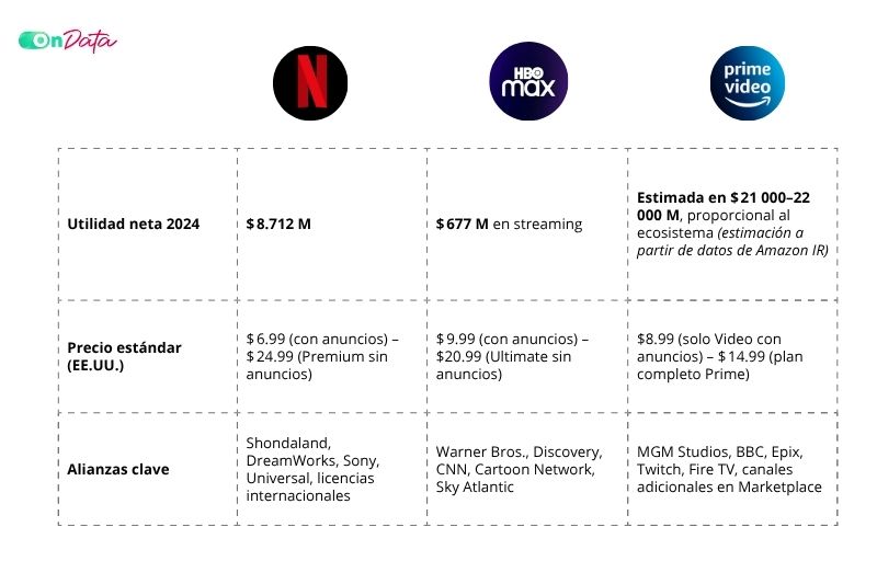Resumen. La guerra del entretenimiento no se juega ya en la pantalla grande ni en el cable, sino en la batalla silenciosa del streaming. Netflix, Prime Video y HBO Max acumulan más de 660 millones de usuarios y miles de millones en ingresos. Pero ¿quién lidera realmente? En este versus comparamos la evolución, modelo de negocio, apuestas tecnológicas y resultados financieros de los tres gigantes que pelean por tu tiempo, tus dato y tu fidelidad.