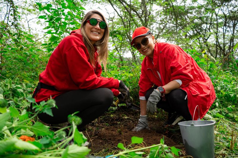 Colaboradores de Terpel Ecuador y sus familias durante la reforestación en Nayón, como parte de la iniciativa Guardianes del Bosque. Fuente: Cortesía.
